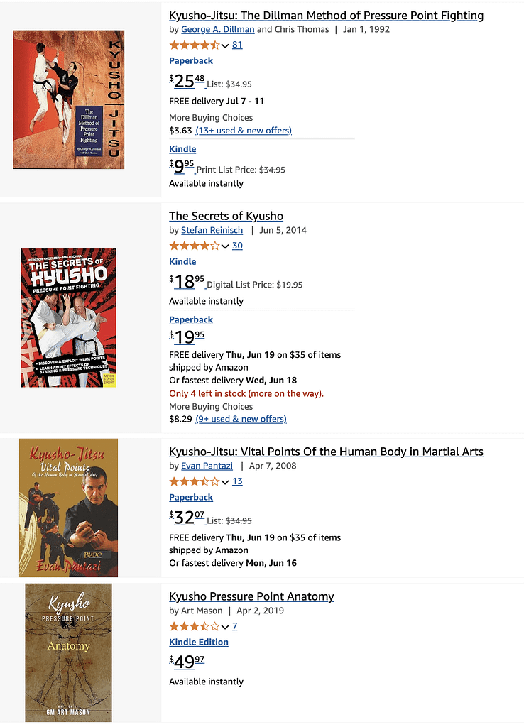 Many great books are published that go into detail. These ‘secret’ nerve centers in the body have been studied extensively for centuries in many cultures. This list of books about how to incorporate Kyusho Pain Pressure Points can get you started quickly.